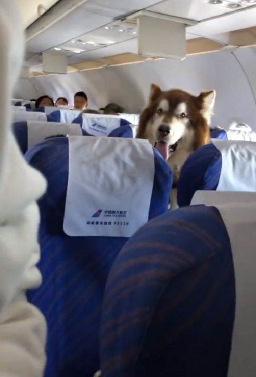網友終于看到了這個傢夥的真面目,原來是一隻阿拉斯加狗狗啊,不知道是不是因為坐飛機很興奮,這只阿拉斯加還笑得非常開心哦。
