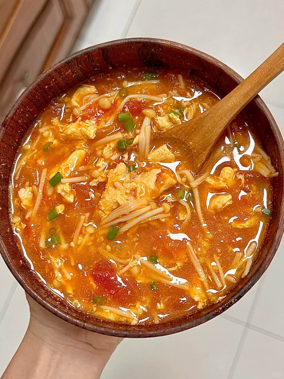 這道番茄金針菇雞蛋湯不僅營養豐富,而且低脂低卡,非常適合想要控制體重或保持身材的人群食用。它酸甜的口感可以刺激食欲,幫助消化,是夏季開胃解暑的佳品。