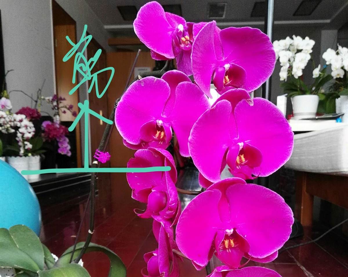 謝花的胡蝶蘭花梗不用剪,只需一招,花梗再次爆芽花滿枝,這一招就是在花梗上想再次開花的位置涂抹生長激素,具體的操作方法就是,把生長激素按照說明書兌水稀釋倍數,我一般是2000倍,然后用棉簽沾水涂抹花梗就行,涂抹一次就夠,千萬不要多次,生長激素是提前消耗類藥物,使用不當易造成早衰,使用后的效果如上圖。