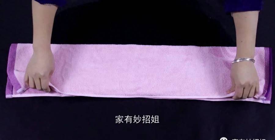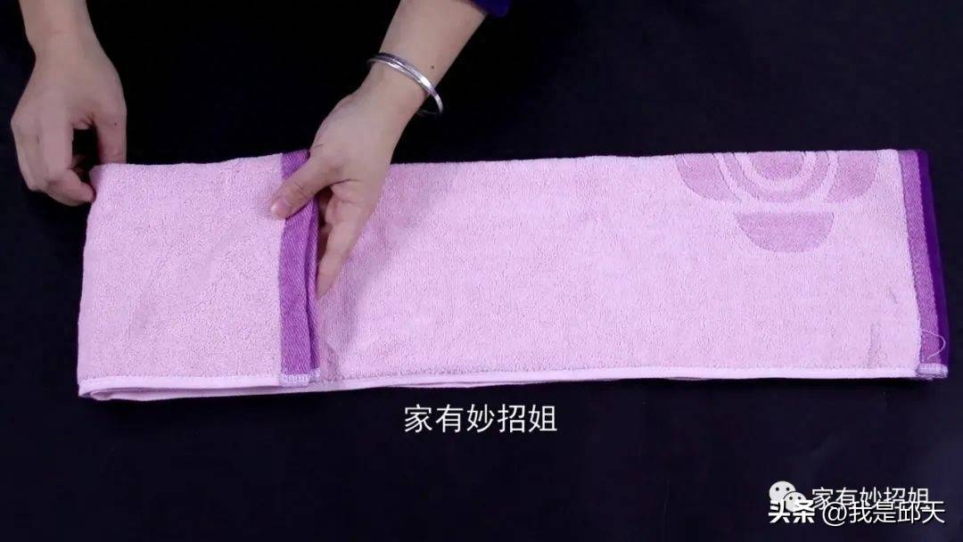 接著,我們再將毛巾的一端,往中間對折一部分,大概對折到毛巾1/3的位置就可以了。