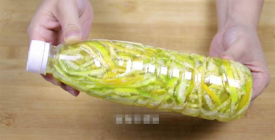 首先,我們要把橘子皮清洗乾淨。畢竟橘子都是露天種植的,表面難免會有一些髒東西。洗的時候,加點鹽巴一起搓洗,可以消毒殺菌,洗得更乾淨。洗好的橘子皮,我們把它切成細絲,裝進一個乾淨的塑料瓶裡。