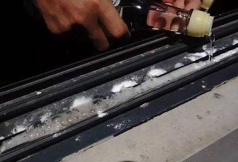 當大家將白醋倒進窗戶縫的時候,就會發現它會與小蘇打發生反應,而且十分劇烈。