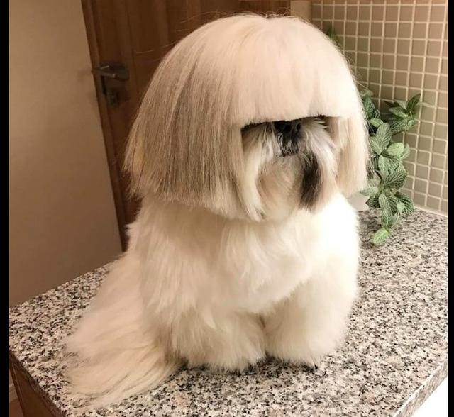 就有這麼一位網友,家裡養了只狗狗。這只狗狗的毛髮特別的旺盛,如果長時間不剪毛的話,可能連它的眼睛都看不見了,所以主人也是經常給它梳理毛髮。最近網友聽理髮師的建議,給狗狗剪了個新的造型!這種齊劉海蘑菇頭的髮型,在人類當中是很常見的,只不過給狗狗剪這樣的髮型,怎麼覺得有點彆扭呢!