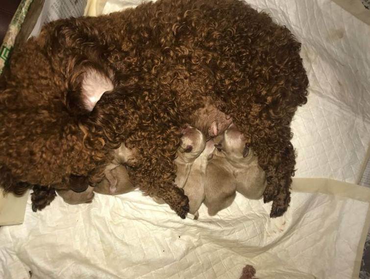 朋友竟也說不清這狗狗懷的到底是誰的孩子,主人看著意外懷孕的泰迪,心裡十分的無奈,但是還是得把小奶狗生下,在主人的精心照料下,兩個月後泰迪生了一窩7只小奶狗。