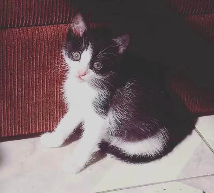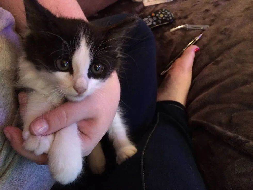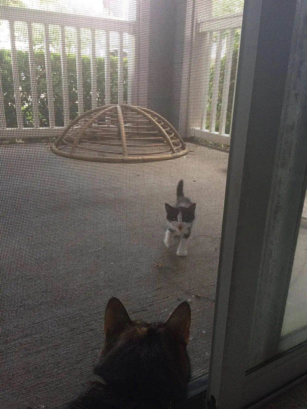 有一隻小奶貓徑直走到狄克西家門口,絲毫不怕生,還一直喵喵地叫著。