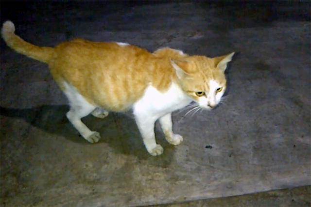 鏟屎官透過窗戶仔細觀察著這只可憐的小家伙,它看起來十分虛弱,背上的毛發也因為長期流浪而變得灰突突的,一看就知道它經常餓肚子。