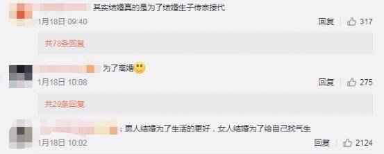 在這條微博下面,兩萬多條評論幾乎全都是對婚姻的消極看法,那麼真實也那麼疼痛。