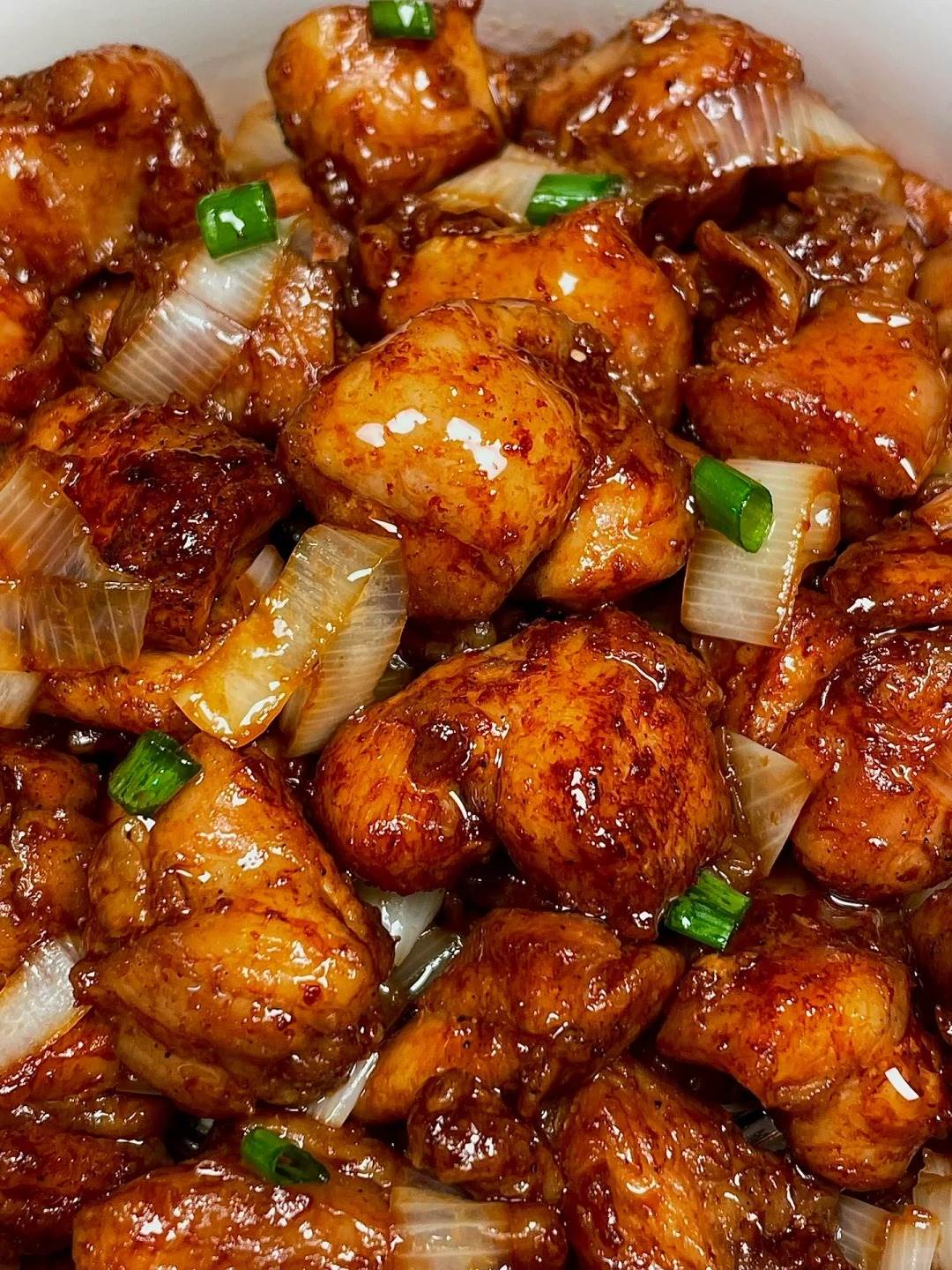 最后,在雞肉燉制差不多的時候,加入切好的大蔥段和辣椒,繼續小火燉煮至湯汁濃稠,蔥段變軟,肉質熟透即可出鍋。