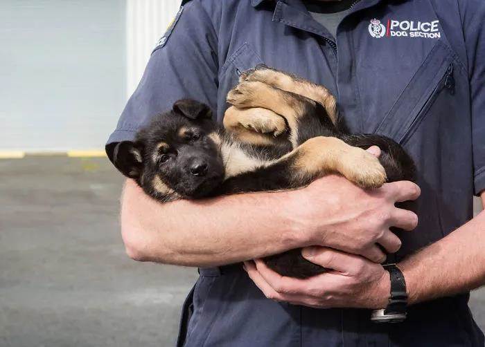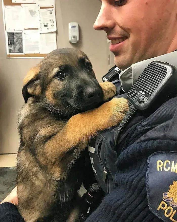 雖說狗狗有點不開心,但警員似乎很滿意,他應該早就看中了這只小警犬了吧。