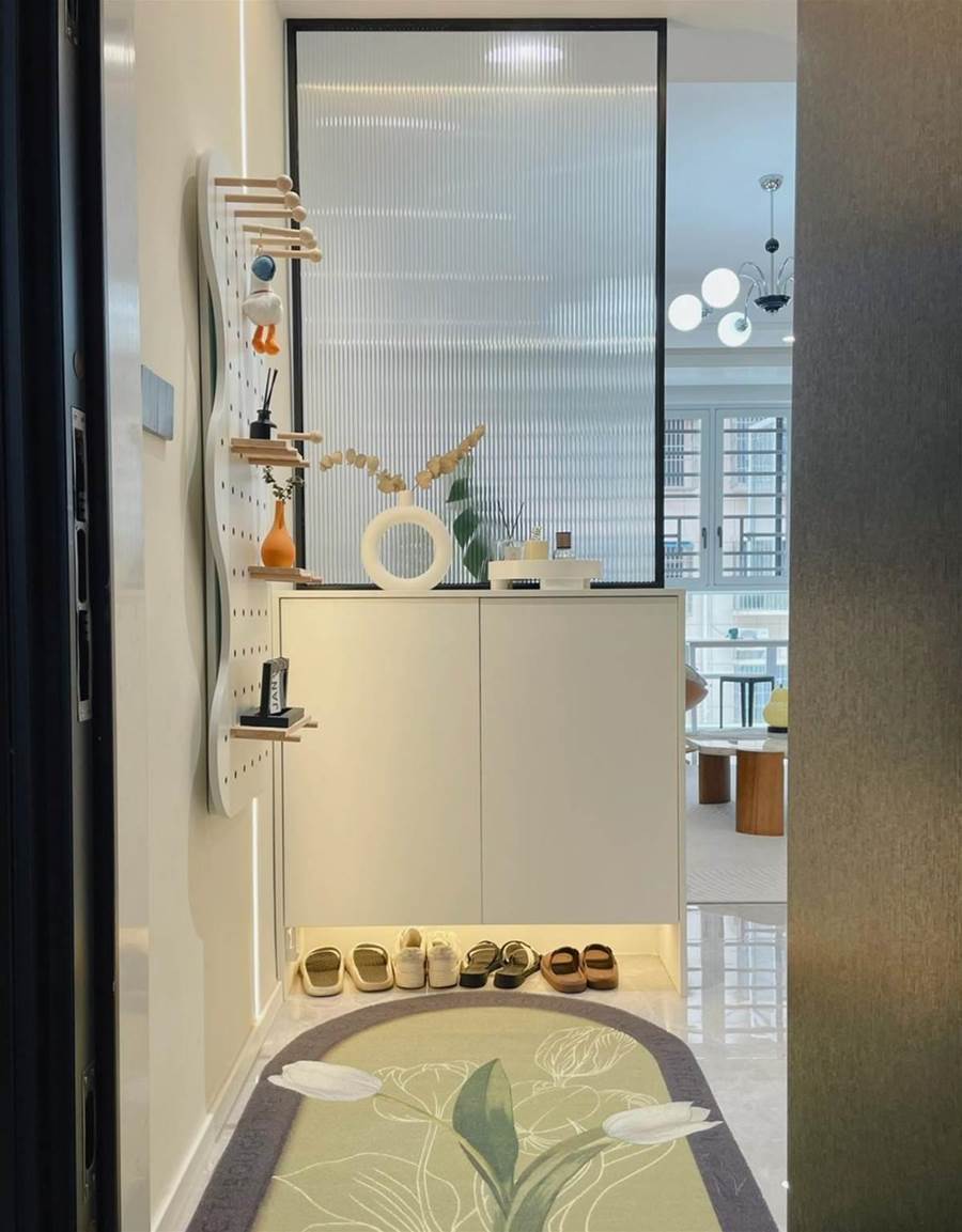 入戶處一定要保持空的狀態,將沒用的物品清理出來扔掉,有用的放進柜子里,鞋子分類擺放好,打造一個干凈,清爽的入戶空間。