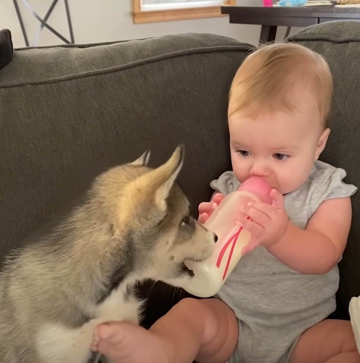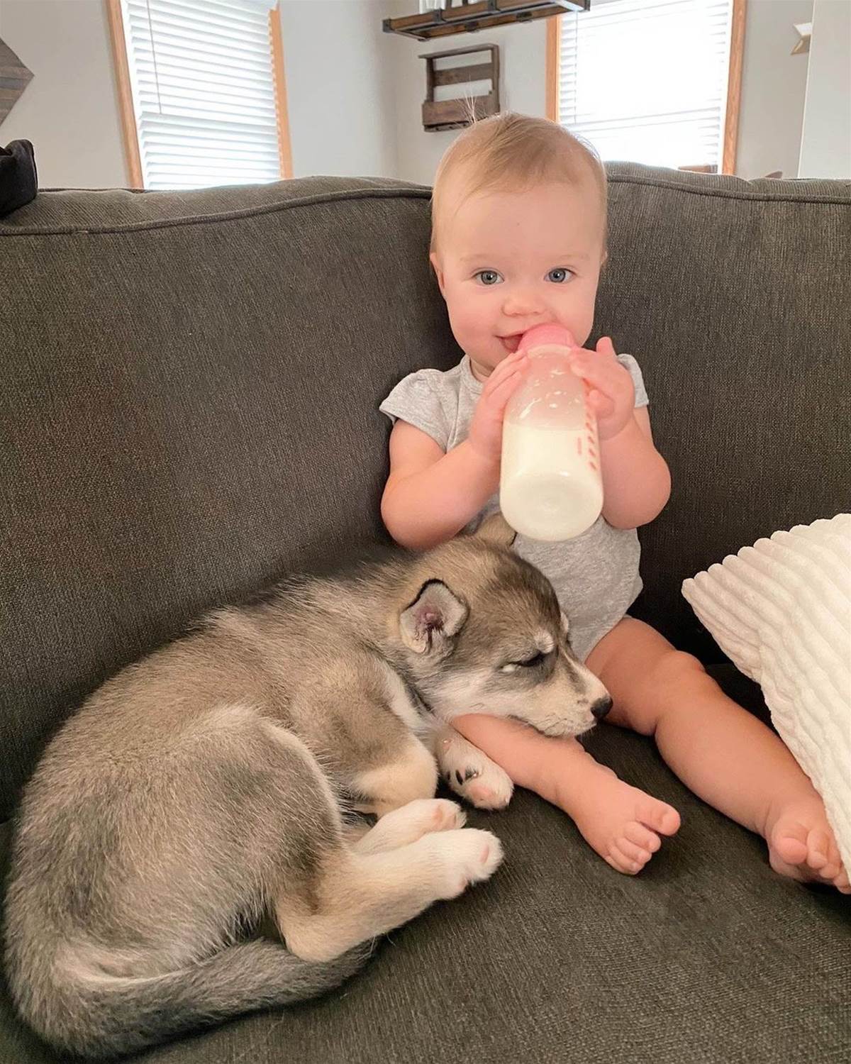 外國有位爸媽領養了一隻雪橇犬,希望女兒可以跟牠一起成長,結果狗狗成長速度太快,不到半年已經變成一隻巨獸!