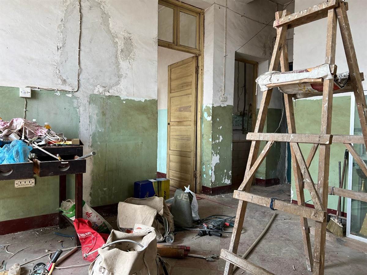 「房子在8樓,一室一廳,總面積在56平方公尺左右,又臟又破,已經閑置了三四年。」王仙說,他最終以580元的月租租下了這套房子。「這個房子布局還可以,剛好還有個天台,可以放我的狗。」王仙稱,初見這個出租屋時,他便已經想到如何去改造,「以前租房多半有限制,不好改造,這次房東說隨便我怎麼折騰。」
