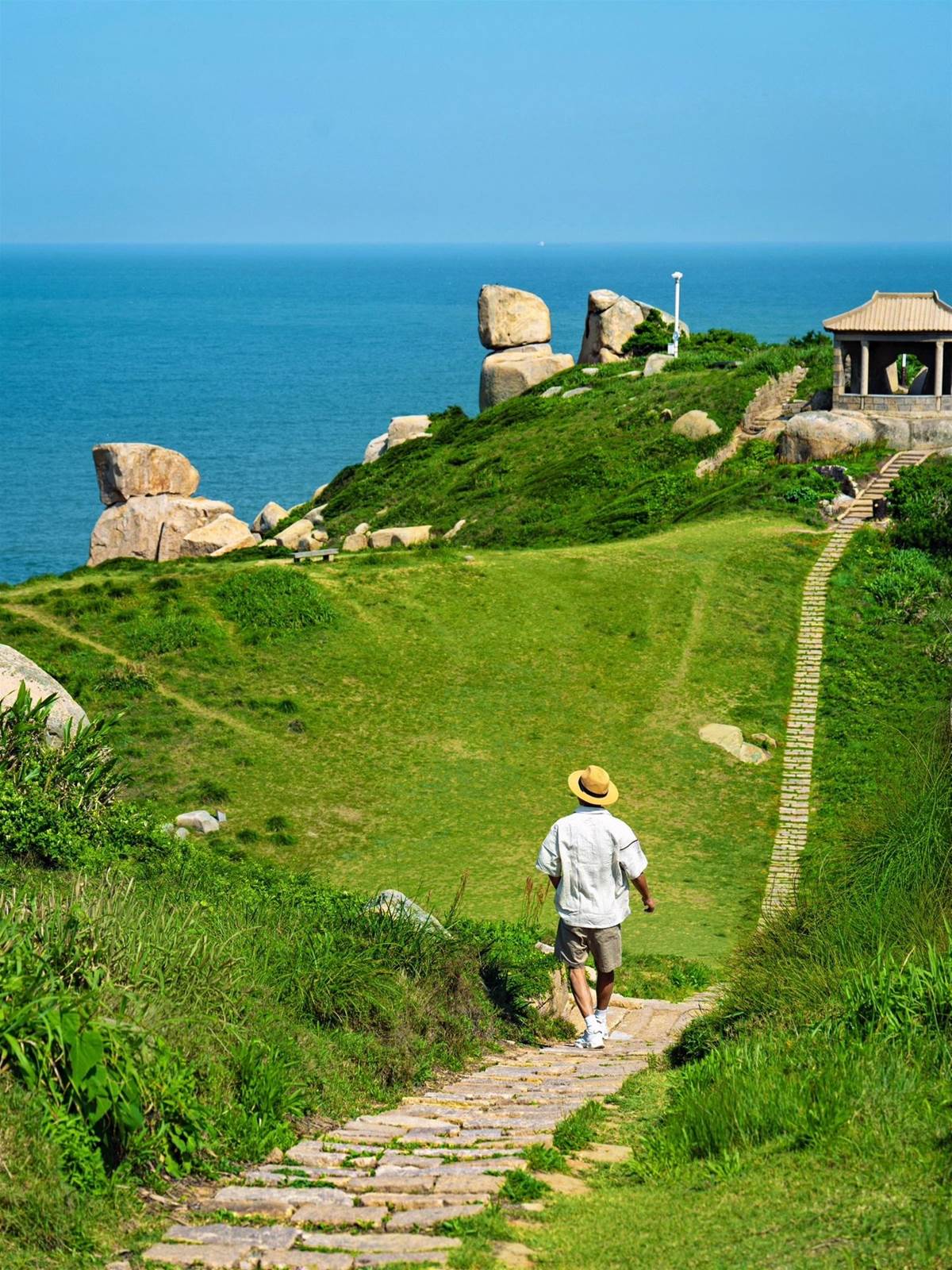 溫州附近這個寶藏海島上有一片山海相依的大草甸,天氣好的時候海真的很藍,一定要在夏天來