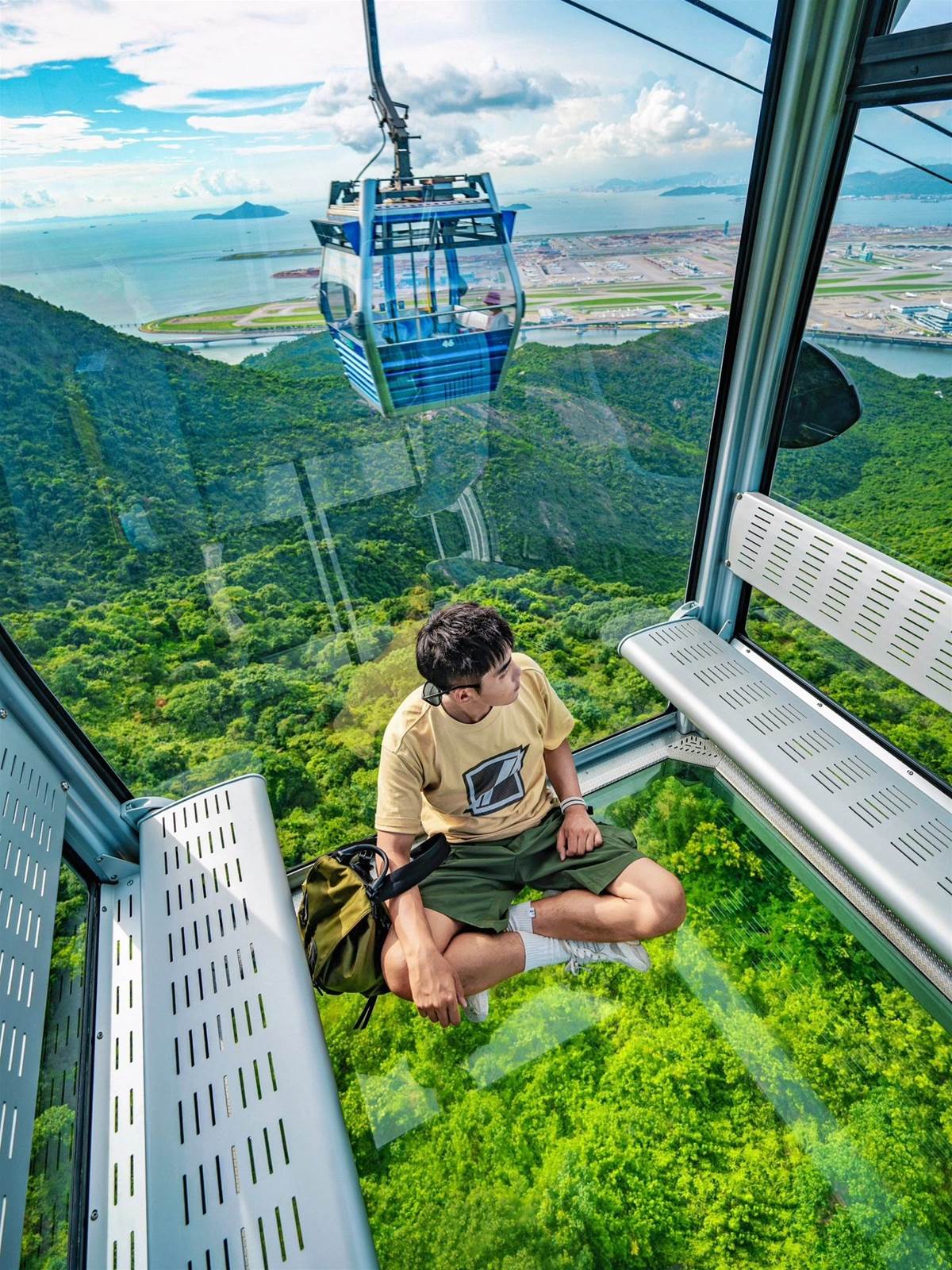 來香港旅行除了會去打卡那些電影感的弄堂街道,也可以來機場附近坐一次這個全景透明纜車,真的泰褲啦