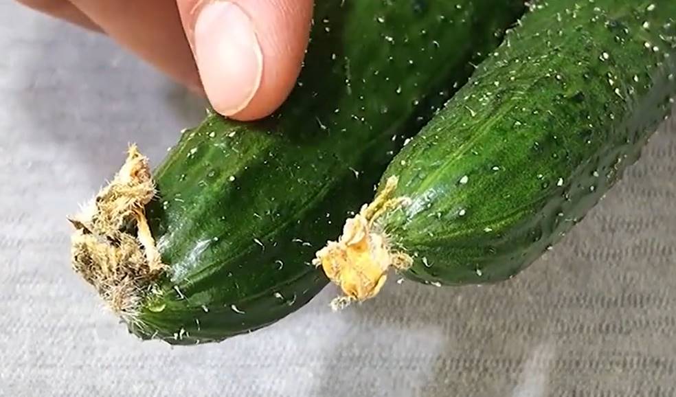 最后一點,還要跟大家來說一說,我們在選黃瓜的時候,一定要看一看黃瓜的頂端位置。