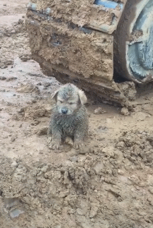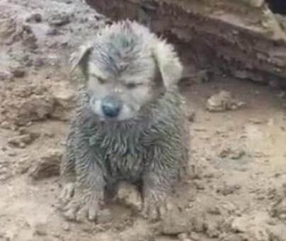 那天清晨,叉車司機張師傅和往常一樣去工地上班。一隻渾身髒兮兮的小狗擋住了他的去路、小傢伙渾身髒兮兮的,似乎流浪了很久。應該年紀不大,但身上的泥巴太多了!根本分辨別不出本身的顏色。