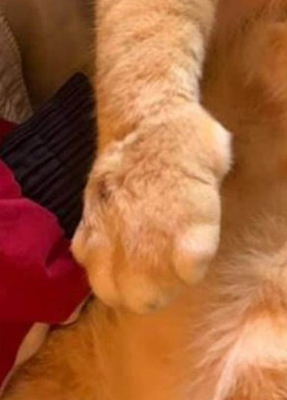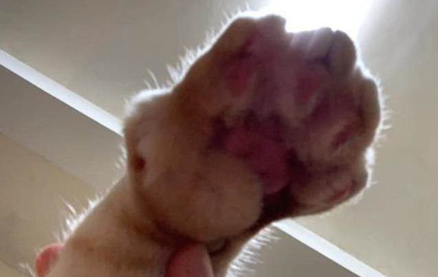這天,橘貓又偷溜出去玩耍了,幸好它還記得回家。然而,當它回到家時,唐小姐卻發現橘貓的手掌有點不對勁,它右邊的手掌竟然比左邊大了2倍,好好的貓掌都快變成熊掌了!