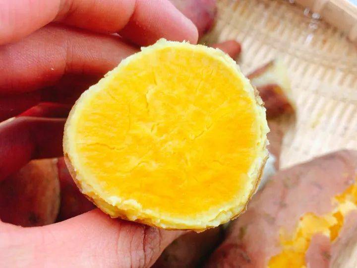 黃心紅薯的外皮是淺黃色,蒸熟后,黃心薯的肉非常的黃。黃心薯的含糖率、含水量比紅心薯略低一些,而比白心紅薯高一些,所以在市場上,一般賣黃心薯的人比較少。但是黃心紅薯中含有的胡蘿卜素是3種紅薯中最多的,我們適當的多吃一些黃心薯,能保護視力。