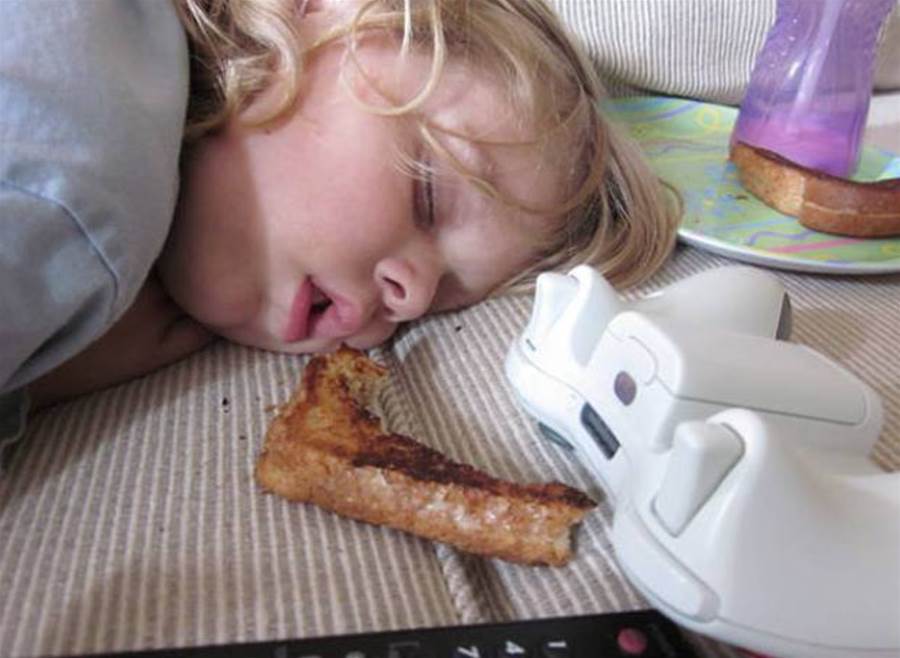 跳跳的媽媽公司里面辦了一個活動,媽媽拿回來了一些牛奶、面包和蛋糕,媽媽說太晚了明天再吃,但跳跳看著面包和蛋糕一直流口水,于是她悄悄拿了一小袋面包,跑到臥室里面躲在被窩悄悄地吃,吃著吃著就睡著了,吃不完的面包就放在枕頭邊上。